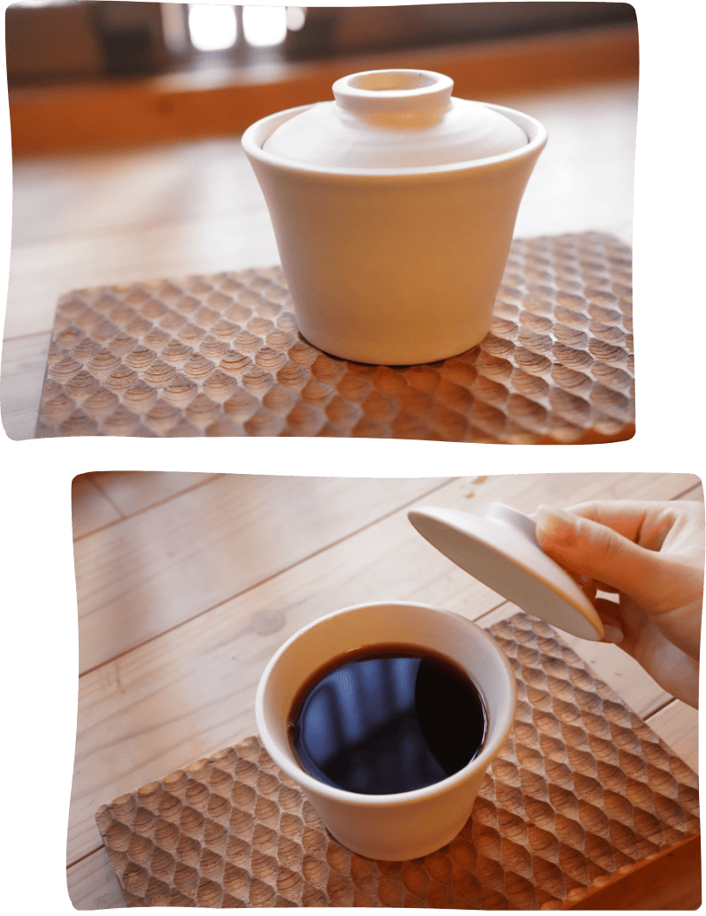珈琲を引き立てる地元の 「宝殿焼き」を使った器